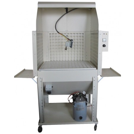 Cabine d'encollage fermée sur roulettes autobloquantes, d'une surface utile 65x75 cm,
