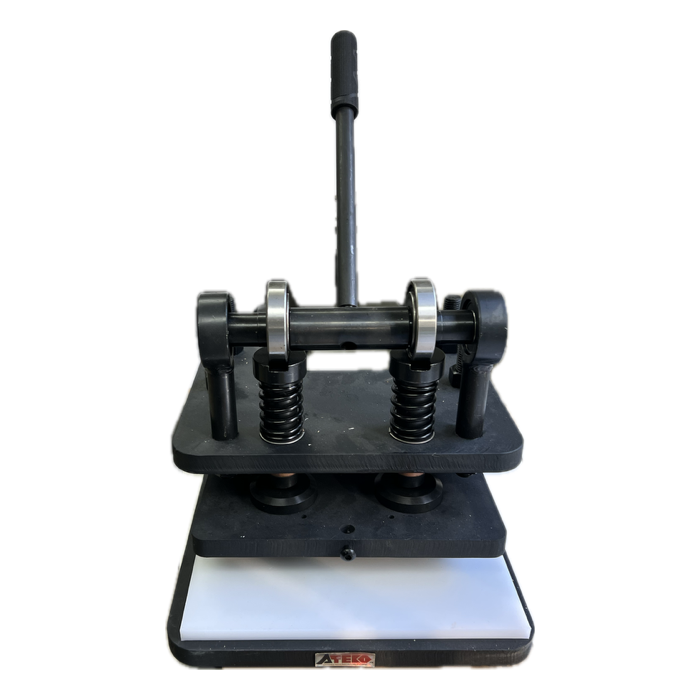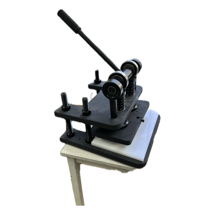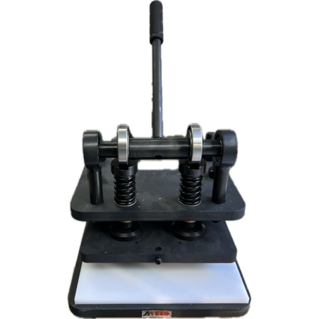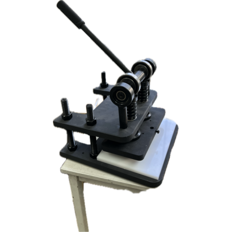 Le fonctionnement de cette presse est similaire à celui d’une presse classique. La tête de découpe est fixée à un cylindre situé à l’arrière de la machine. Grâce à sa longue poignée, cette presse permet à l’utilisateur d’exercer manuellement une pression maximale de 5 tonnes.